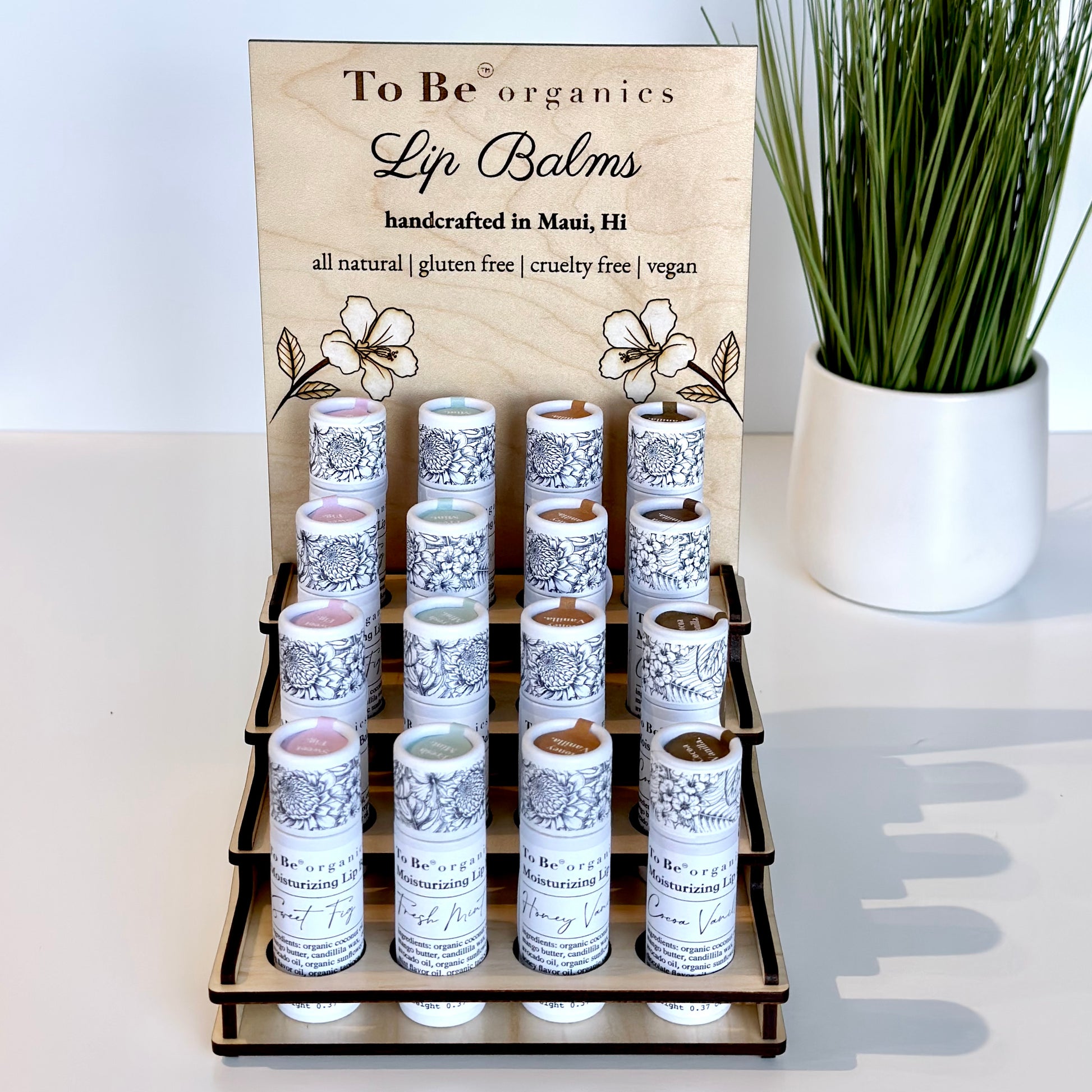 Already carry our lip balm? Add this beautiful Display to feature our best selling lip balms. Made from light Maple wood to seamlessly fit into any decor.