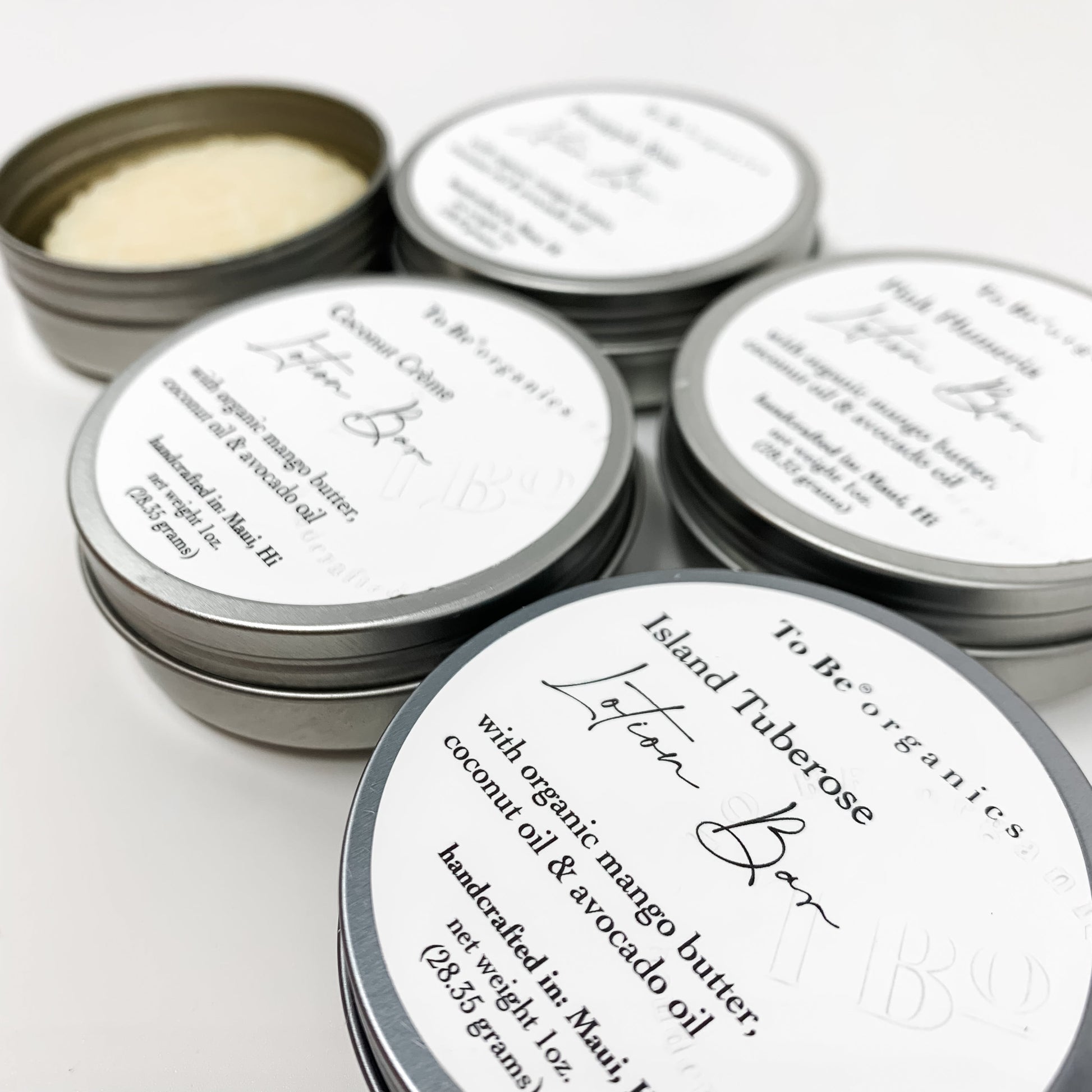 Specs: aluminum screw top re-usable 2oz. tin, net weight 1oz. (28.35) lotion bar