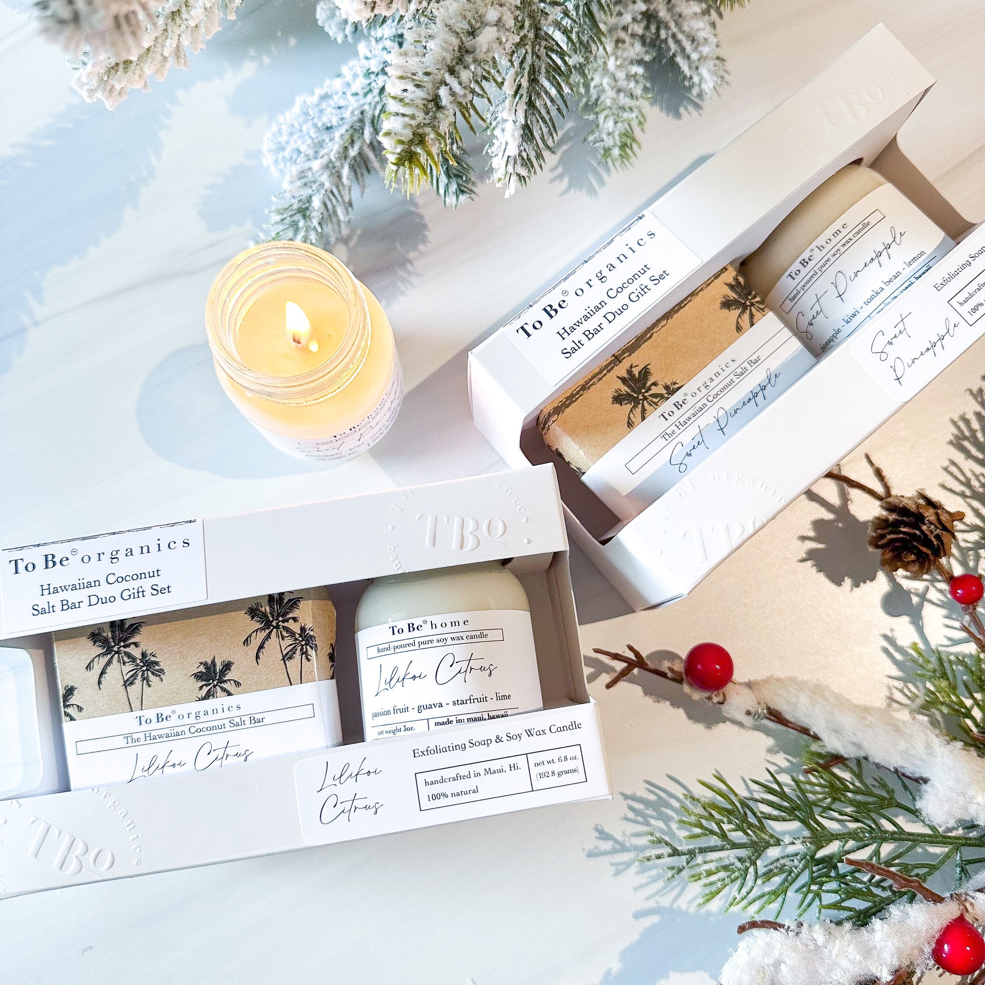 3oz. soy wax candles and a large 3.8 oz Hawaiian Coconut Salt Bar.