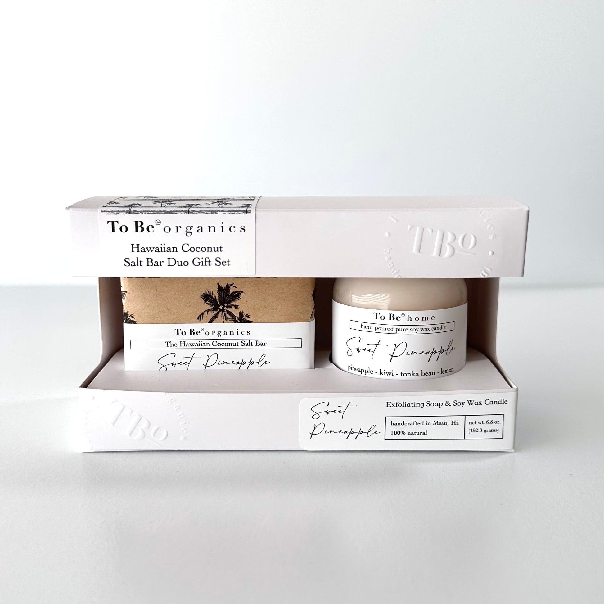 This fun Combination includes one of our hand poured 3oz. soy wax candles and a large 3.8 oz Hawaiian Coconut Salt Bar.
